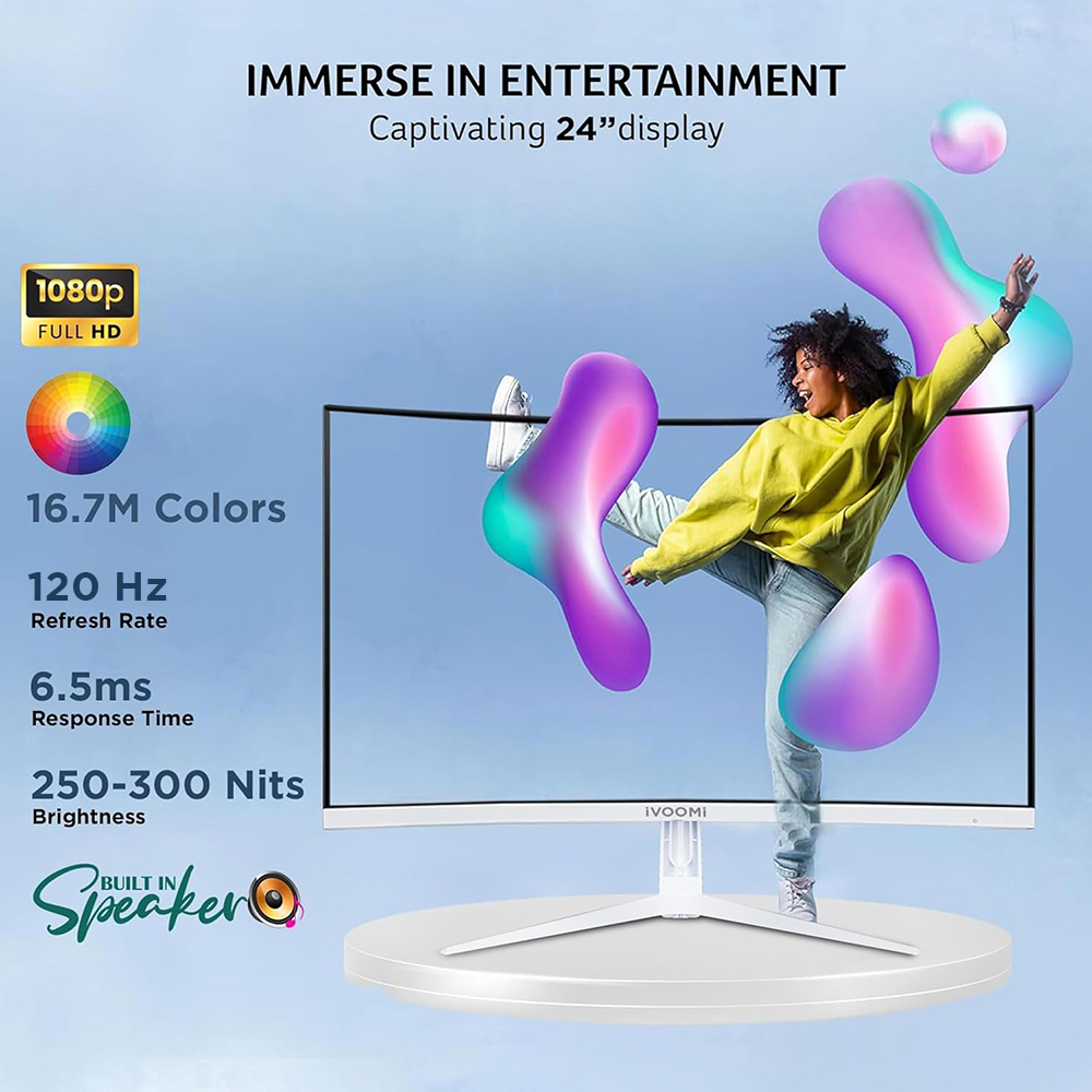 iVOOMi 24 Inch (60.45 cm) | BIS approved Ultra Slim Flicker free CURVE R3000 frameless FHD Monitor | 120Hz Refresh Rate, 1920 x 1080 Pixels, Free HDMI Cable | 16.7M Colors |Tilt option | 3 Year Warranty