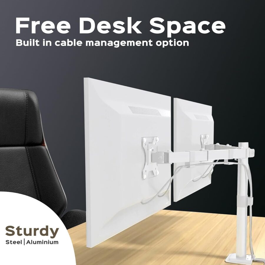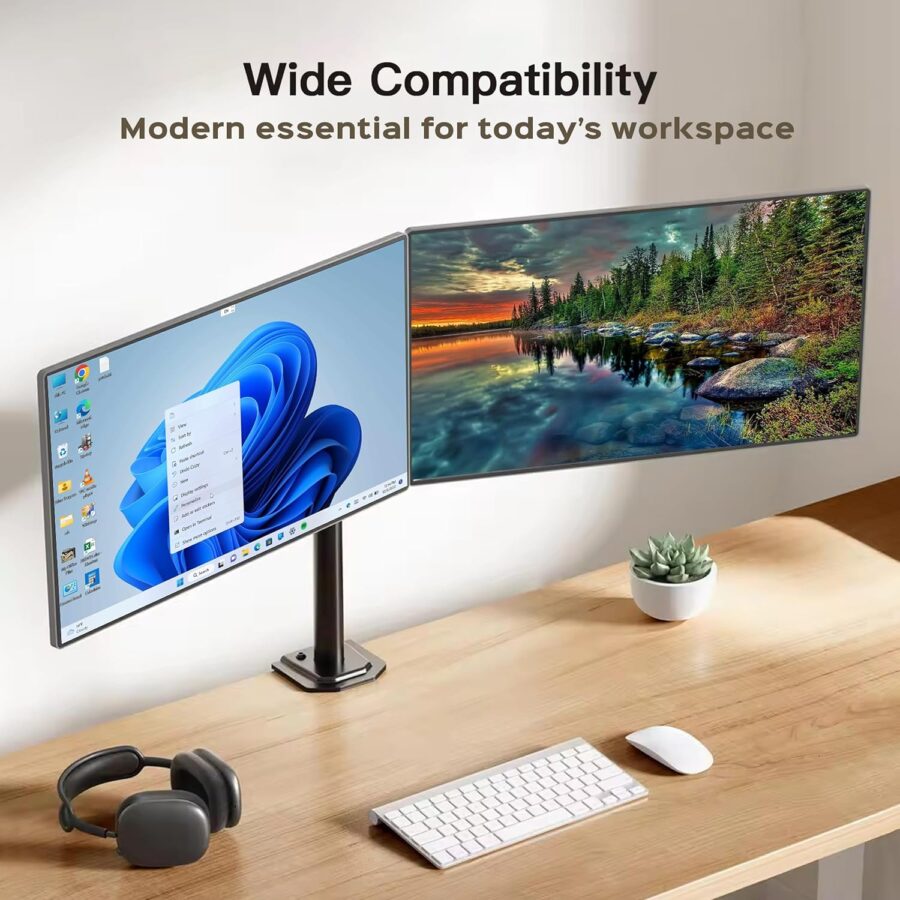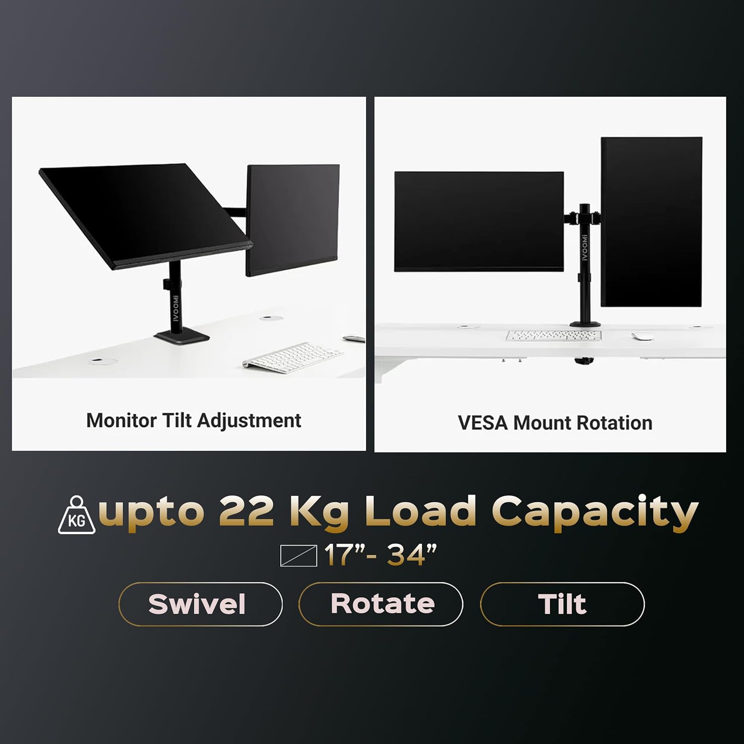 Power Duo Dual Monitor Stand for Desk with VESA Mount, Adjustable Mechanical Monitor arm with Grommet Mounting Base for 15-34” 2-22 kgs Screens, VESA Compliant Up to 100 x 100mm – Black