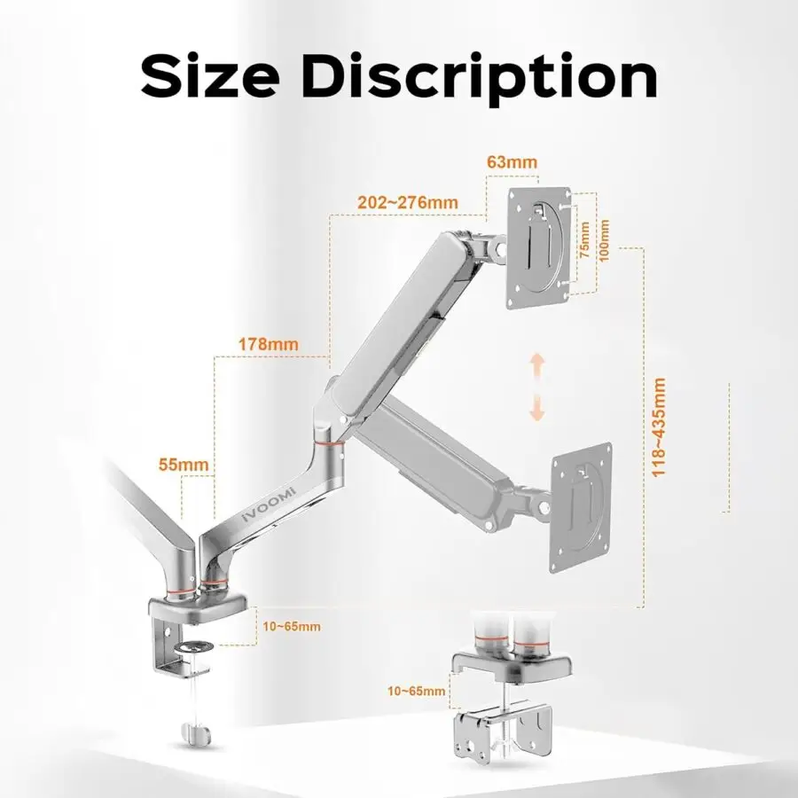 - Gas Spring Mount with VESA Support: Equipped with a smooth gas spring mechanism and universal VESA compatibility (75x75mm & 100x100mm), this iVOOMi monitor stand ensures easy adjustment and a secure fit for your computer monitor.