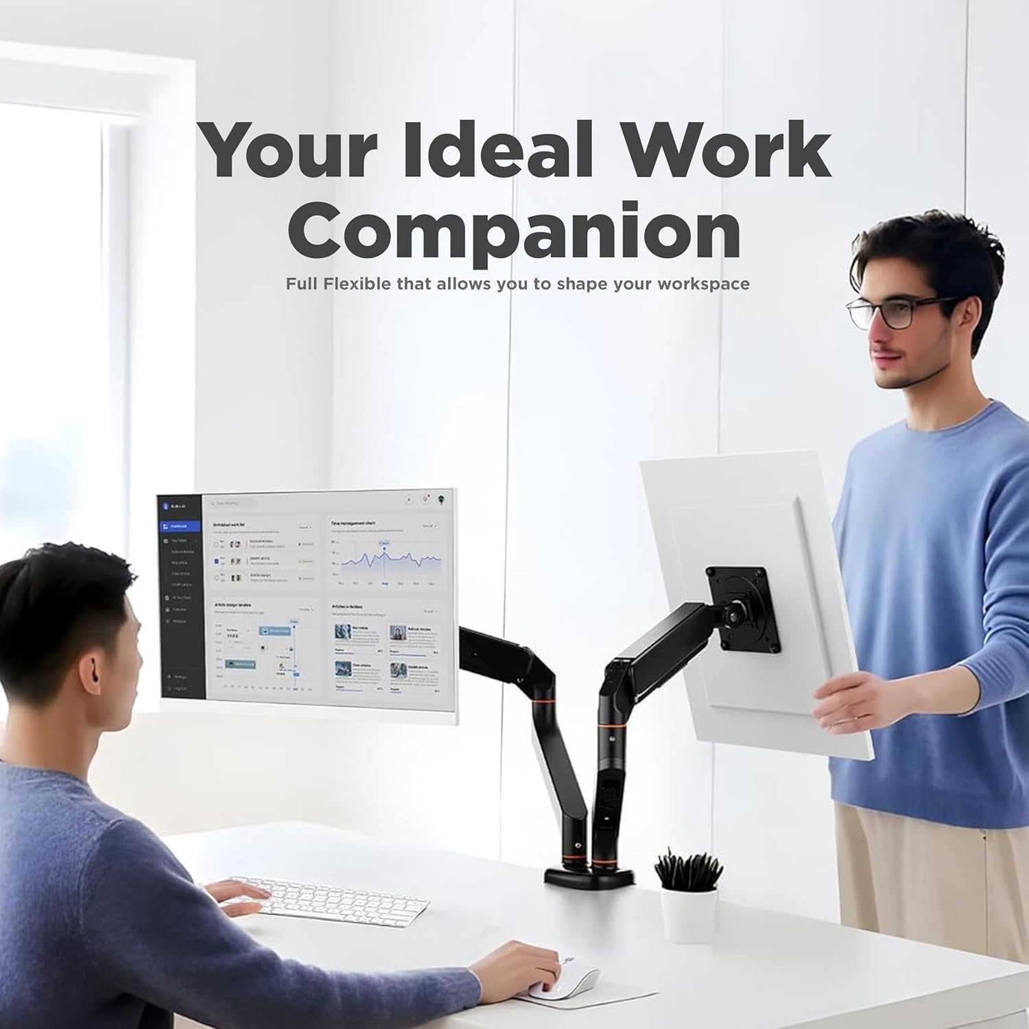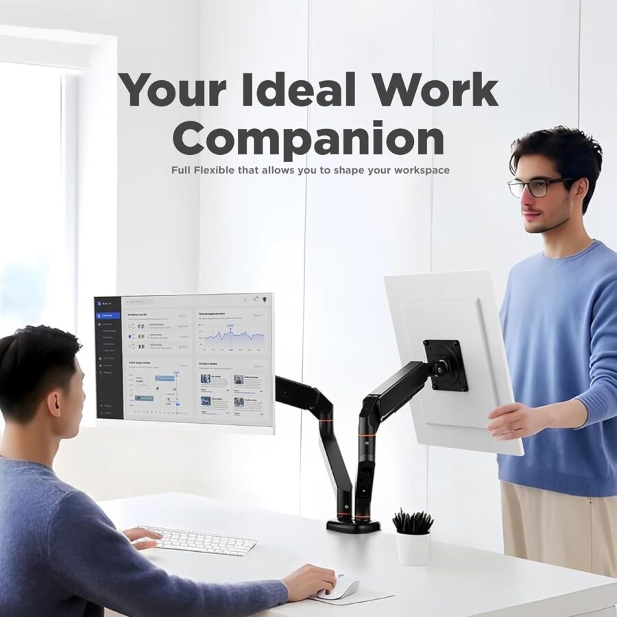 - Easy Installation with Guide: Comes with a detailed installation manual for hassle-free setup. The iVOOMi Dual Power Arm transforms any desk into a flexible workstation, offering professional-grade support for your computer monitor.