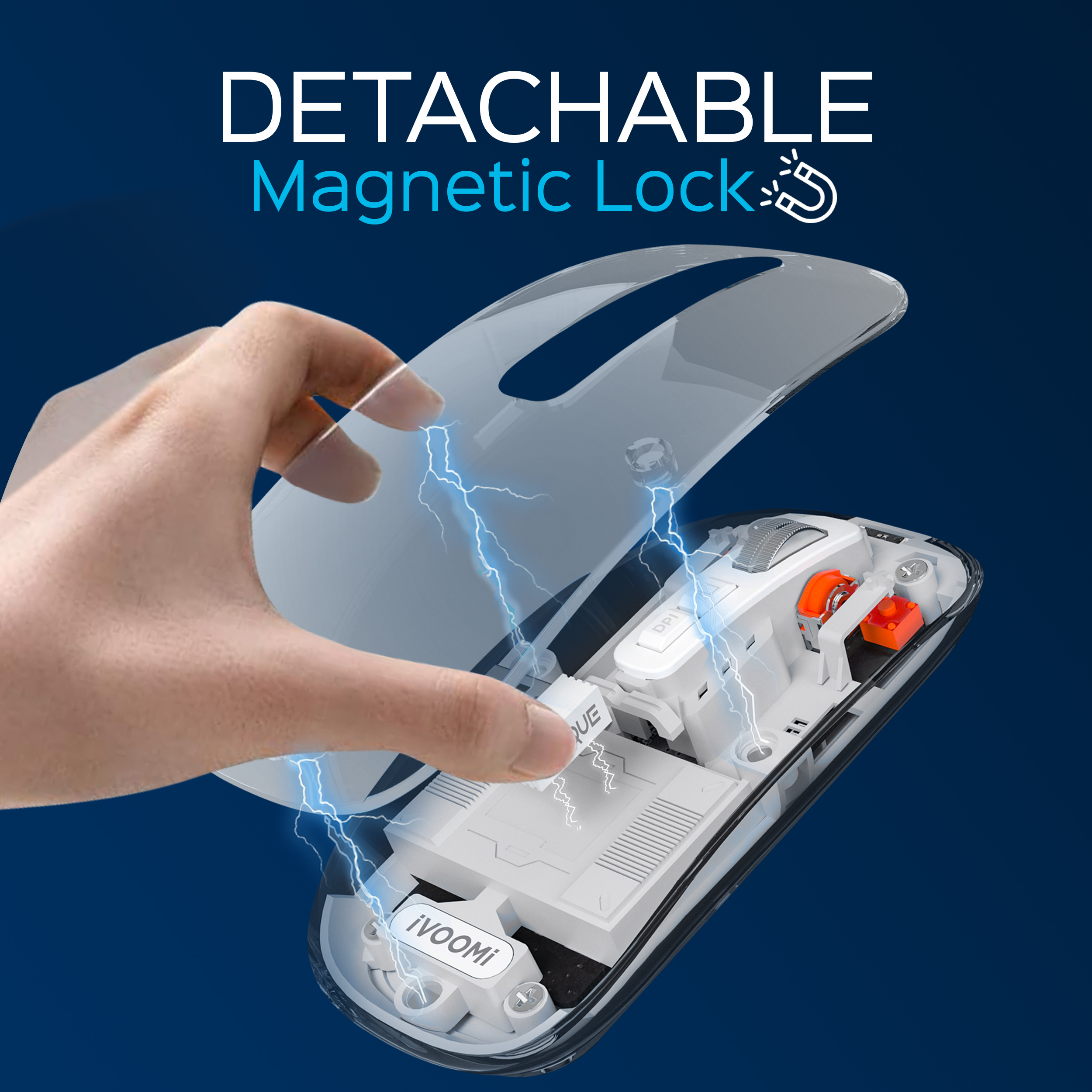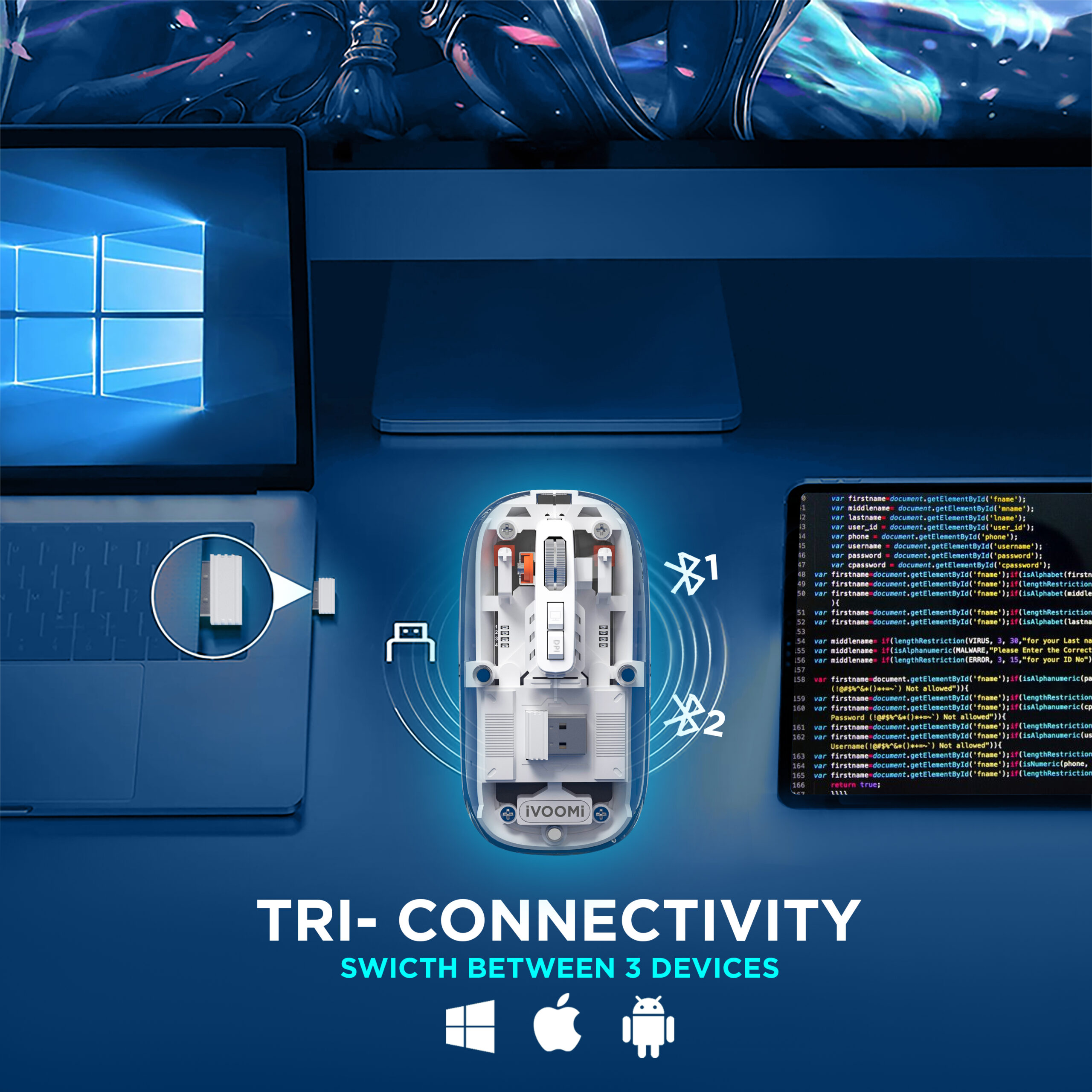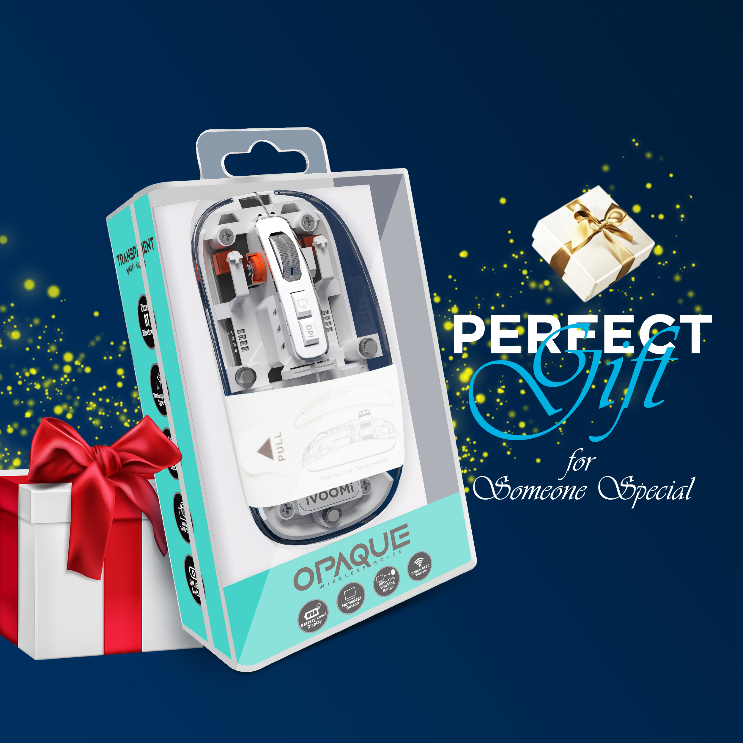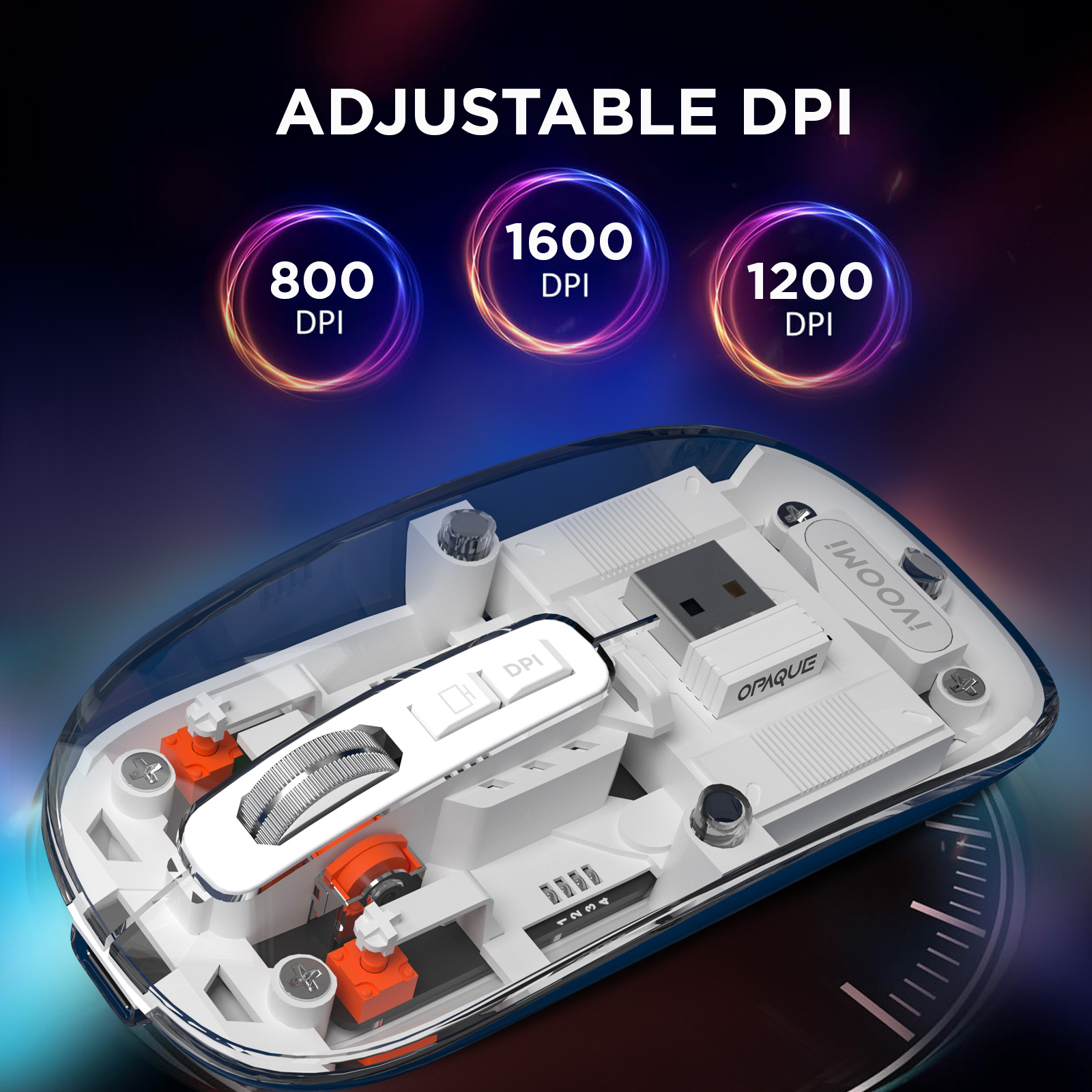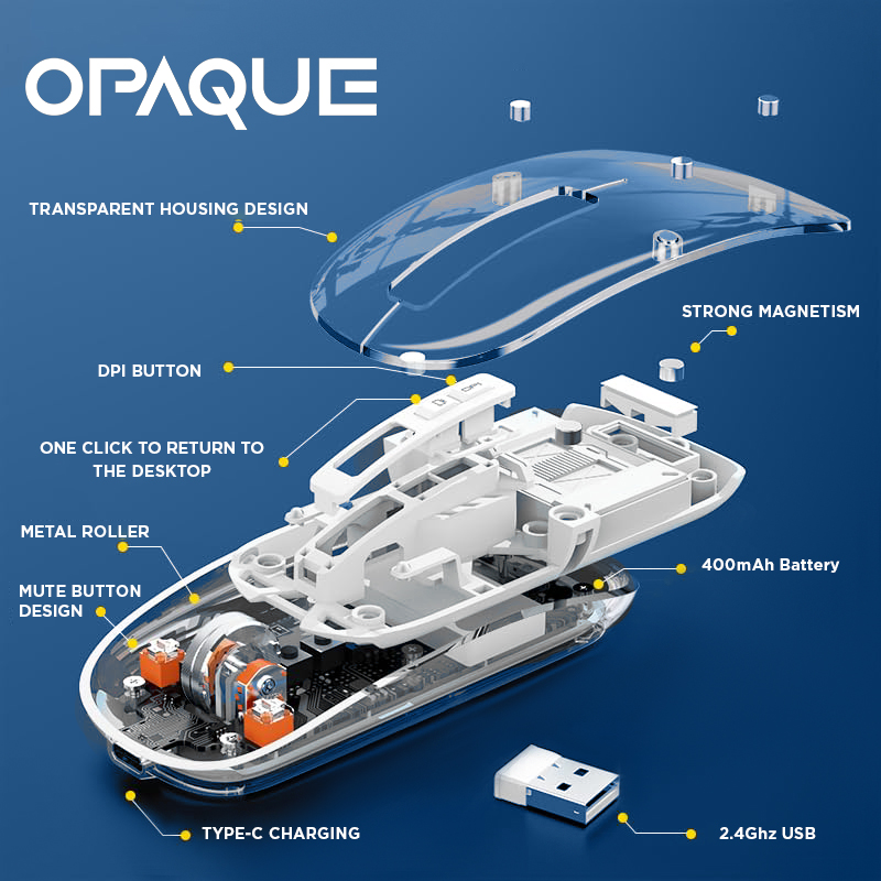 iVOOMi Opaque wireless Mouse | 2.4Ghz+BT5.0 | 1600 DPI | range 15 meter | On/Off switch | Type-C Rechargeable | Longer working time | Nano receiver | Win/ iOS/ Linux/Android | Transparent Design| 1 Year Warranty