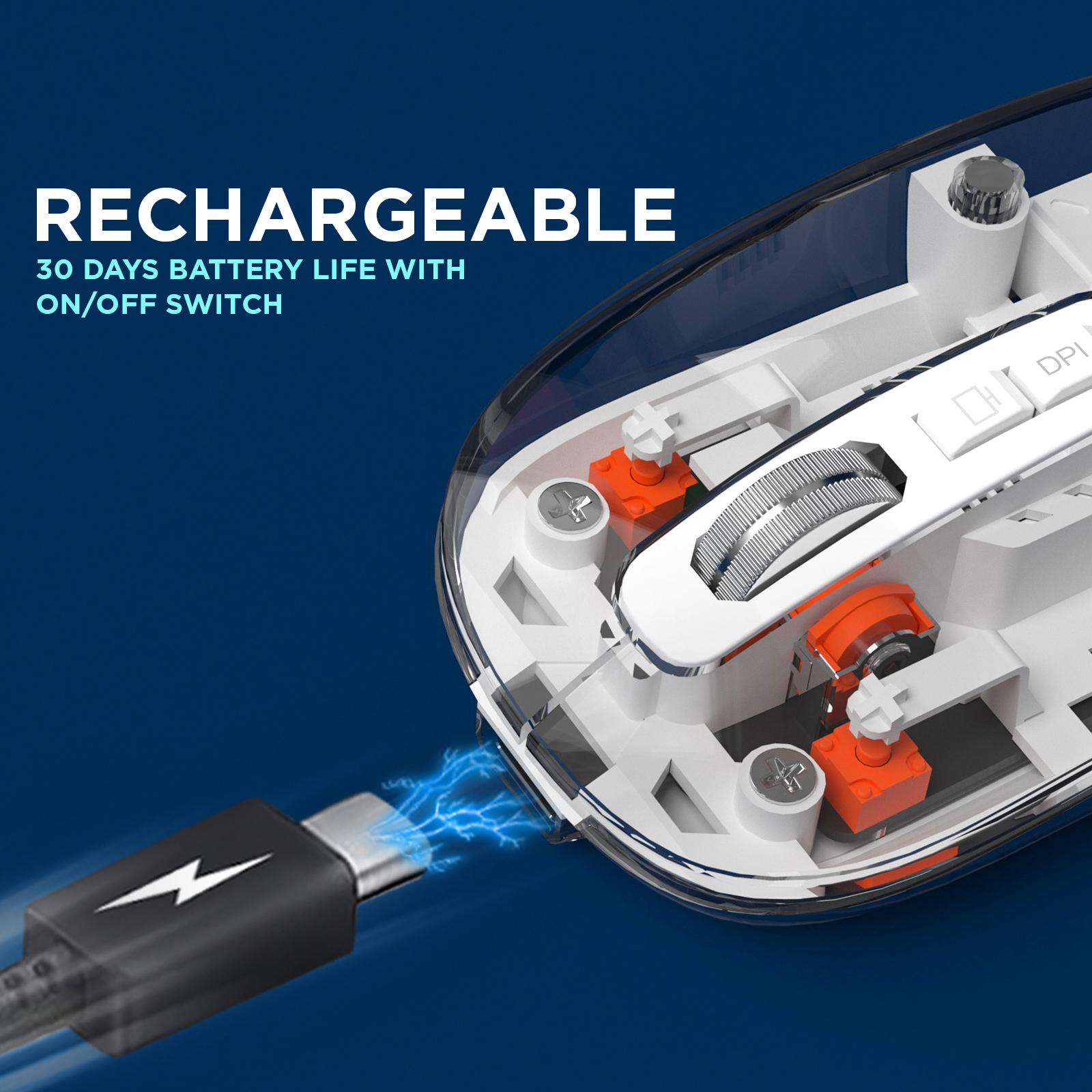 Rechargeable: Choose USB-C,wireless charging options, Look for a mouse with long-lasting battery life, typically measured in days or weeks on a single charge.